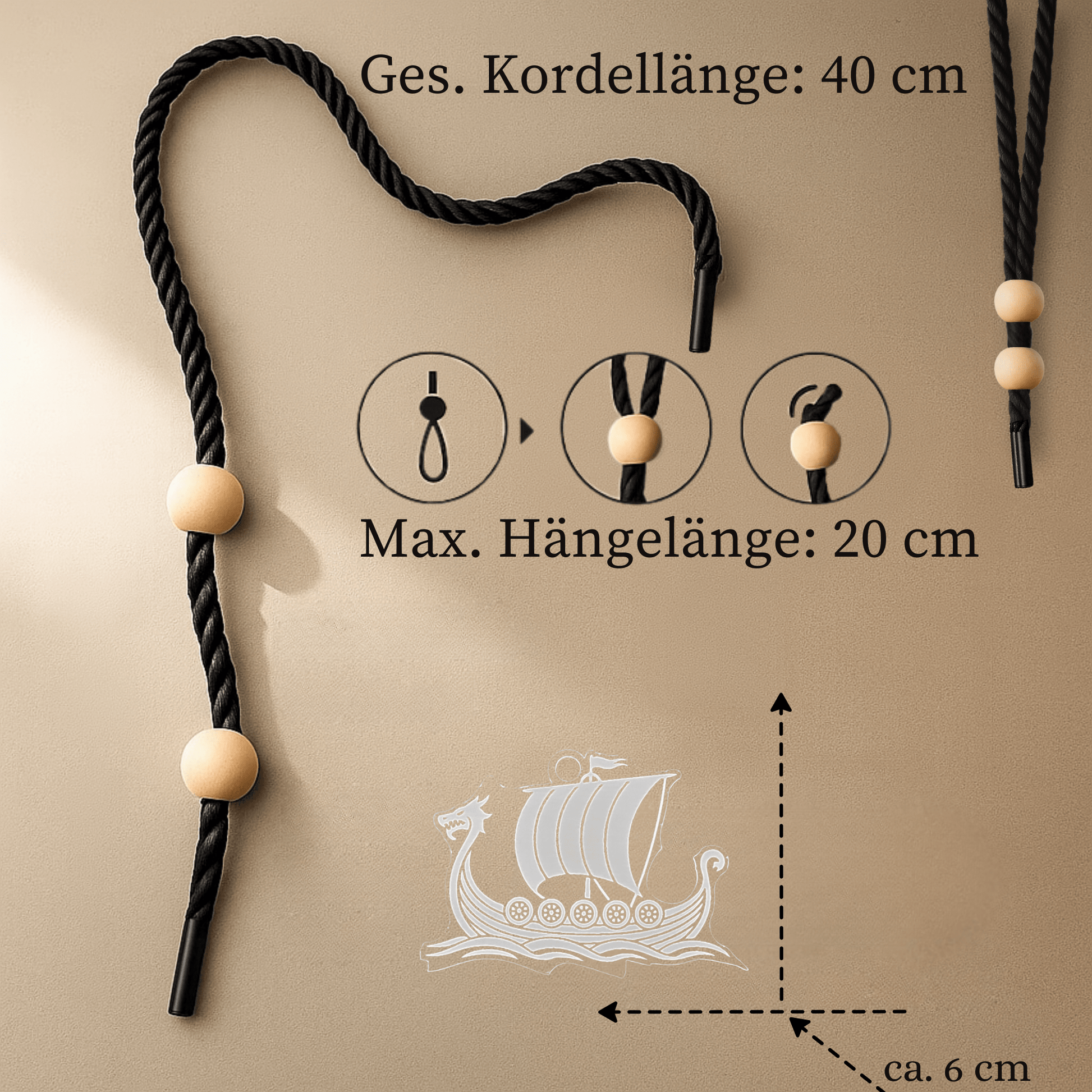 - Befestigung: Baumwollkordel mit Holzkugeln