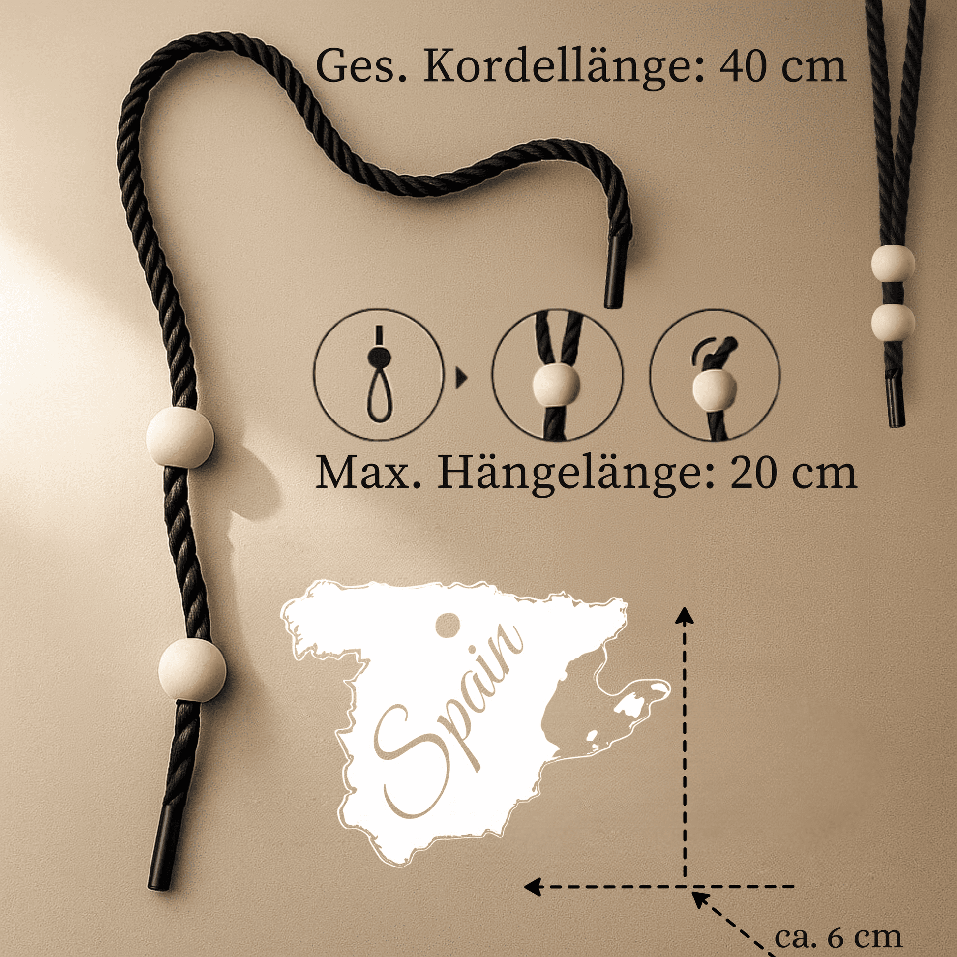 - Befestigung: Baumwollkordel mit Holzkugeln