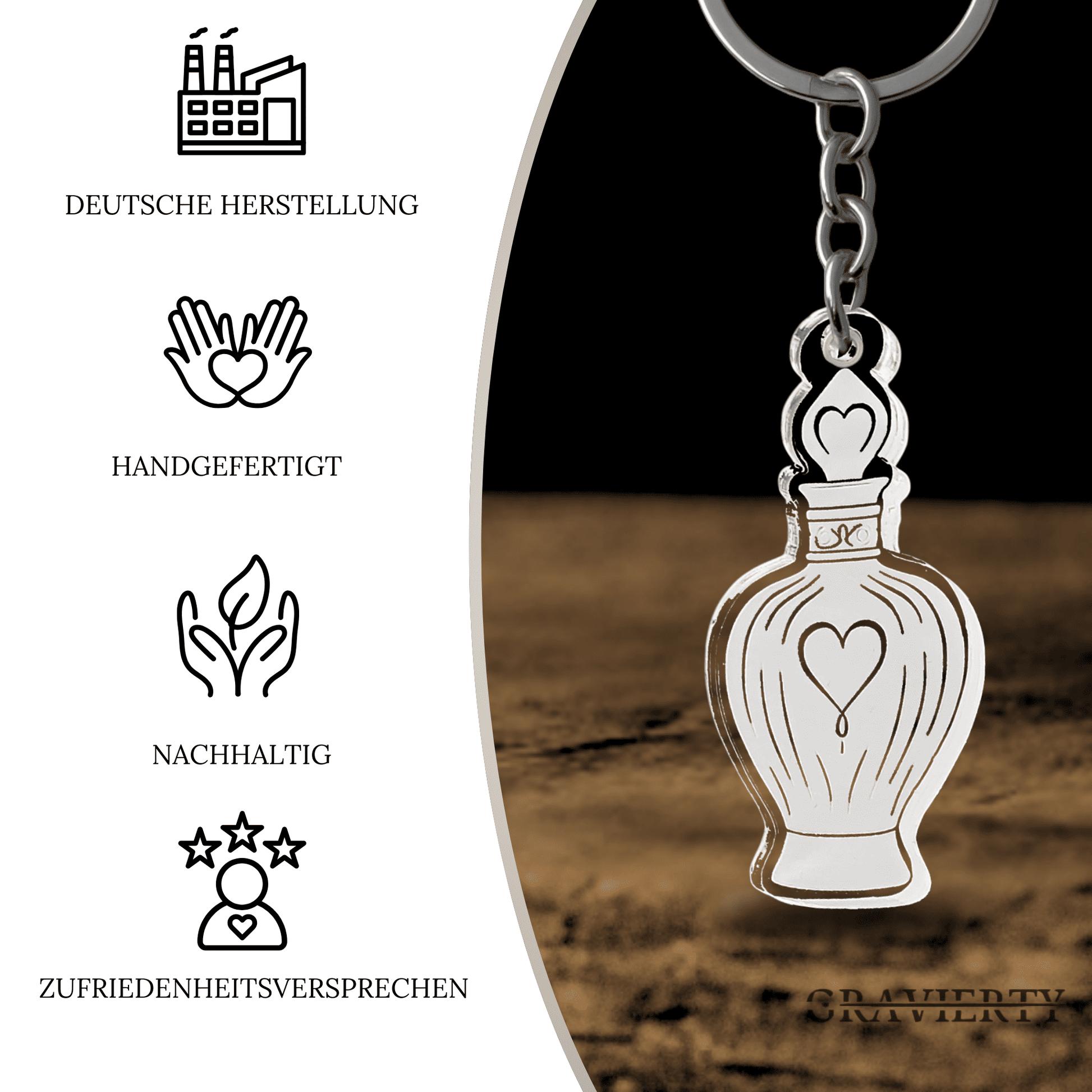 Jeder Schlüsselanhänger wird in Deutschland gefertigt – mit Liebe zum Detail, Nachhaltigkeit und höchstem Qualitätsanspruch.